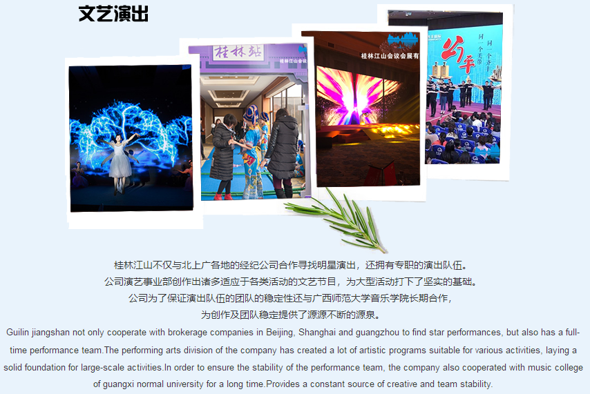 桂林江山会议会展有限责公司是一家专业的MICE公司;是传统服务与信息技术相结合的科技型公司。 公司立足于线下活动的丰富经验,坚持运用信息技术为各类活动(项目)提供更优质与便捷的管理与服务。公司开发的《冬瓜云服务与管理系统》《双线展览平台》《注册通》《报到通》《多点位全景直播平台》等应用软件处于行业领先地位。桂林江山会议是一个大家庭,于2012年创立,经过长期的经营,吸纳与培训了大批关于会务服务、设计创意、公关演艺、会奖活动、信息技术等项目的众多专业人材,涉及展览工程搭建、庆典活动策划、影视制作与直播、大型文艺演出、会奖旅游、H5、小程序等软件的开发等众多业务。江山会议由一支具有超前的营销理念并...